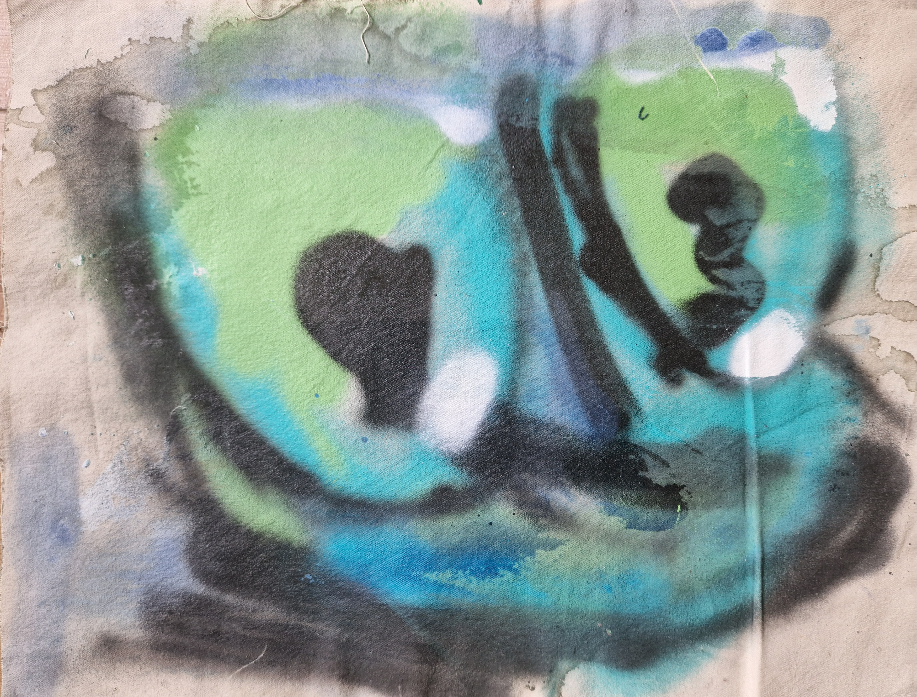 60cm by 45cm, spray water and acrylic on canvas. 2025